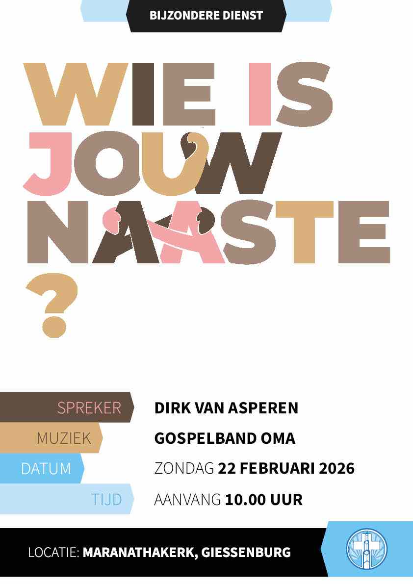 ![]() “Verbonden, niemand staat alleen” Top 2000 dienst in de Maranatha kerk, Giessenburg. Op 16 november ’25 wordt weer een Top2000 dienst gehouden in onze kerk. Het thema is “Verbonden, niemand staat alleen”. De aanvang is 18.30 uur, maar de kerkzaal is open vanaf 18.00 uur. Voorganger is Ds. Annette Driebergen uit Noordeloos. Muziek en zang wordt verzorgd door het Popkoor0183 uit Spijk. Veel teksten uit de popmuziek hebben een verrassende overeenkomst met verhalen uit de Bijbel. Ds. Annette Driebergen zal gedurende de dienst de verbinding zoeken tussen de muziek en het Evangelie. Het wordt een bijzondere dienst met veel zang- en muzieknummers uit de Top2000. Na de dienst is er koffie en thee om na te praten en elkaar te ontmoeten. Iedereen van harte welkom ! ! |